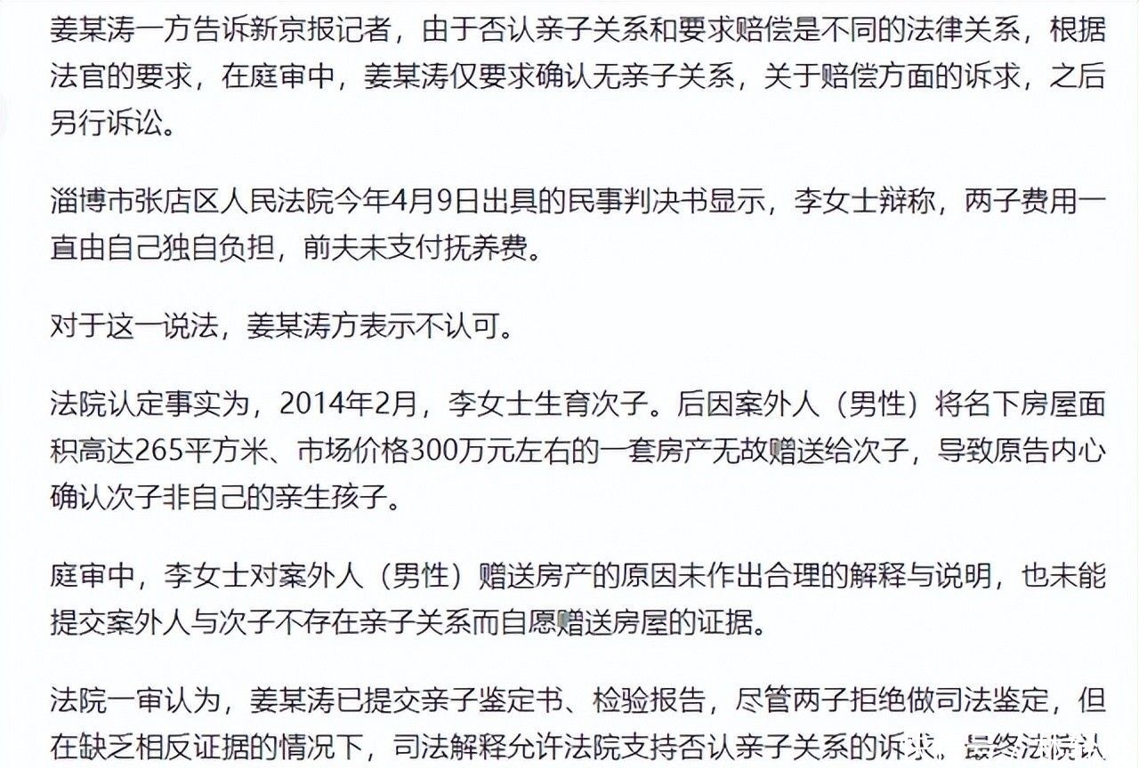 其中大儿子更是不配合鉴定,说自己“没有义务”配合,庭审结束之后,大儿子接受采访的时候还说“是姜洪涛先不认我,说我不是他亲生的,还把我赶出了家门,这一切都是他娶了小媳妇之后才发生的。”